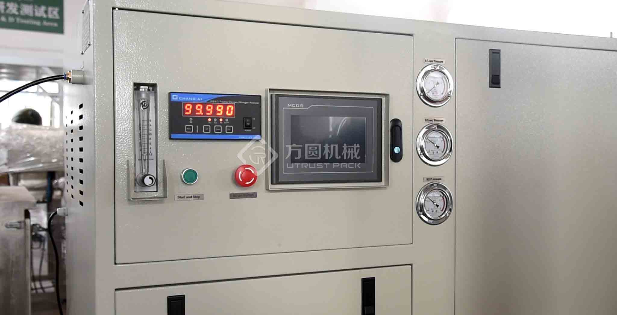 تتضمن الخطوة الأخيرة تقنية أساسية للحفاظ على نضارة رقائق الموز، تستخدم نظامًا مُخصصًا لتوليد النيتروجين لتحقيق "تثبيت النضارة بالنيتروجين". ولمعالجة مشكلة تأكسد رقائق الموز المقلية بسهولة، يقوم هذا الجهاز بحقن النيتروجين عالي النقاء في العبوة مع إزالة الأكسجين بسرعة. ونتيجة لذلك، تصبح رقائق الموز أقل عرضة للتليّن أو تغير النكهة. في بيئة خالية من الأكسجين، ولكن يتم الحفاظ على قرمشة ورائحة رقائق الموز وقت الإنتاج بشكل فعال. وهذا يعزز القدرة التنافسية للمنتج ويفتح آفاقاً أوسع في السوق.